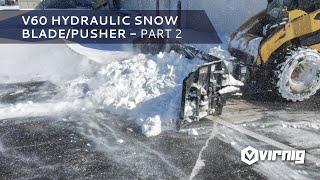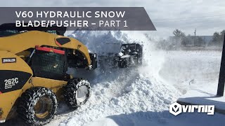 Virnig's V60 Heavy Duty Hydraulic Snow Blade/Pusher Attachment for skid steer loaders is a variable pusher with straight and angled positions to make your snow removal jobs quick, painless, and incredibly efficient.