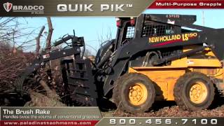 The new Quik Pik Multi-Purpose Grapple from Bradco is an incredible all in one grapple designed to manage brush, logs, bales, rocks, pipes, and any of your standard pallet jobs.